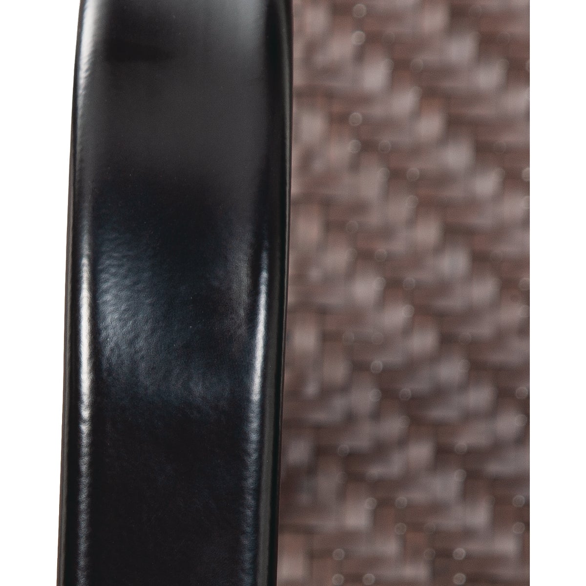 Outdoor stacking chair features a black powder-coated durable steel frame with outdoor wicker material for the seat. Stackable design provides easy storage. Seat dimensions: 18 In. W. x 22 In. H. x 18 In. D. Overall chair dimensions: 22 In. W. x 36 In. H. x 29 In. D. 250-pound load capacity. 1-year limited warranty.