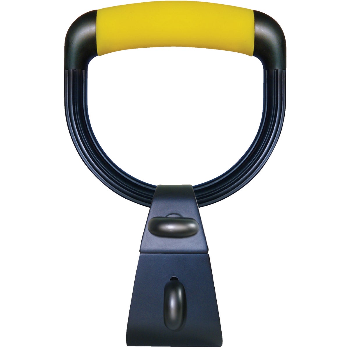 Fits any tool handle with a twist of a knob. Fast and easy-to-use. Eliminates blisters, fatigue, aches, and pains. Balances the weight of the load when shoveling. Can also be used to hang on storage hooks. Cushion handle adjusts horizontally, vertically, and swivels. Comes preclip stripped. Size: 9" L. x 6" W. x 3.25" D.
