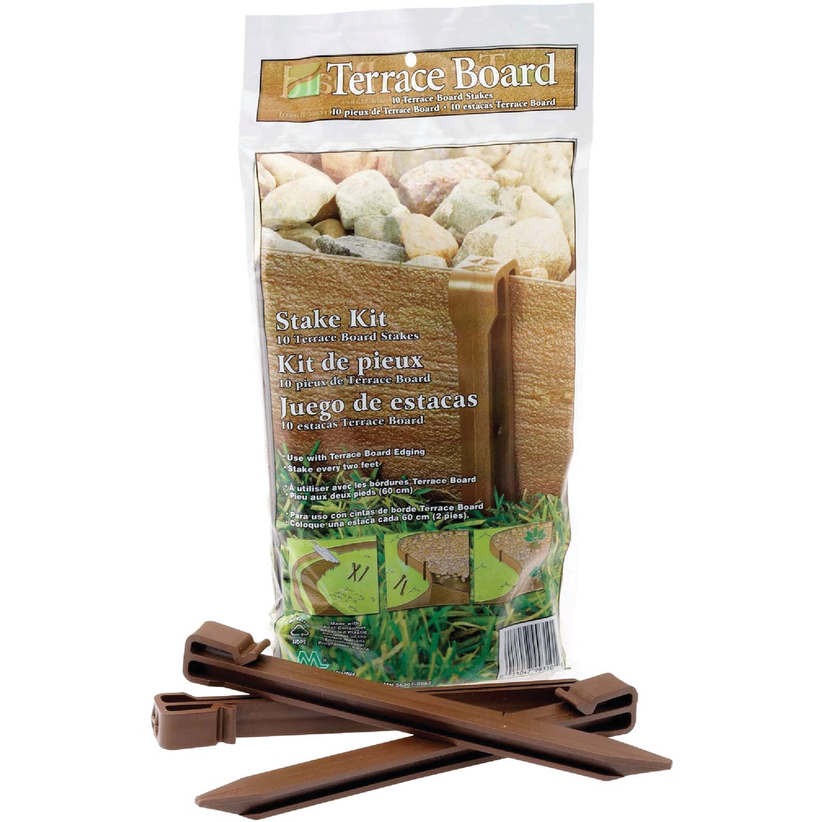 Poly stakes to use with the Terrace Board edging. Easy to install. Hooks on top of Terrace Board to hold edging in place.