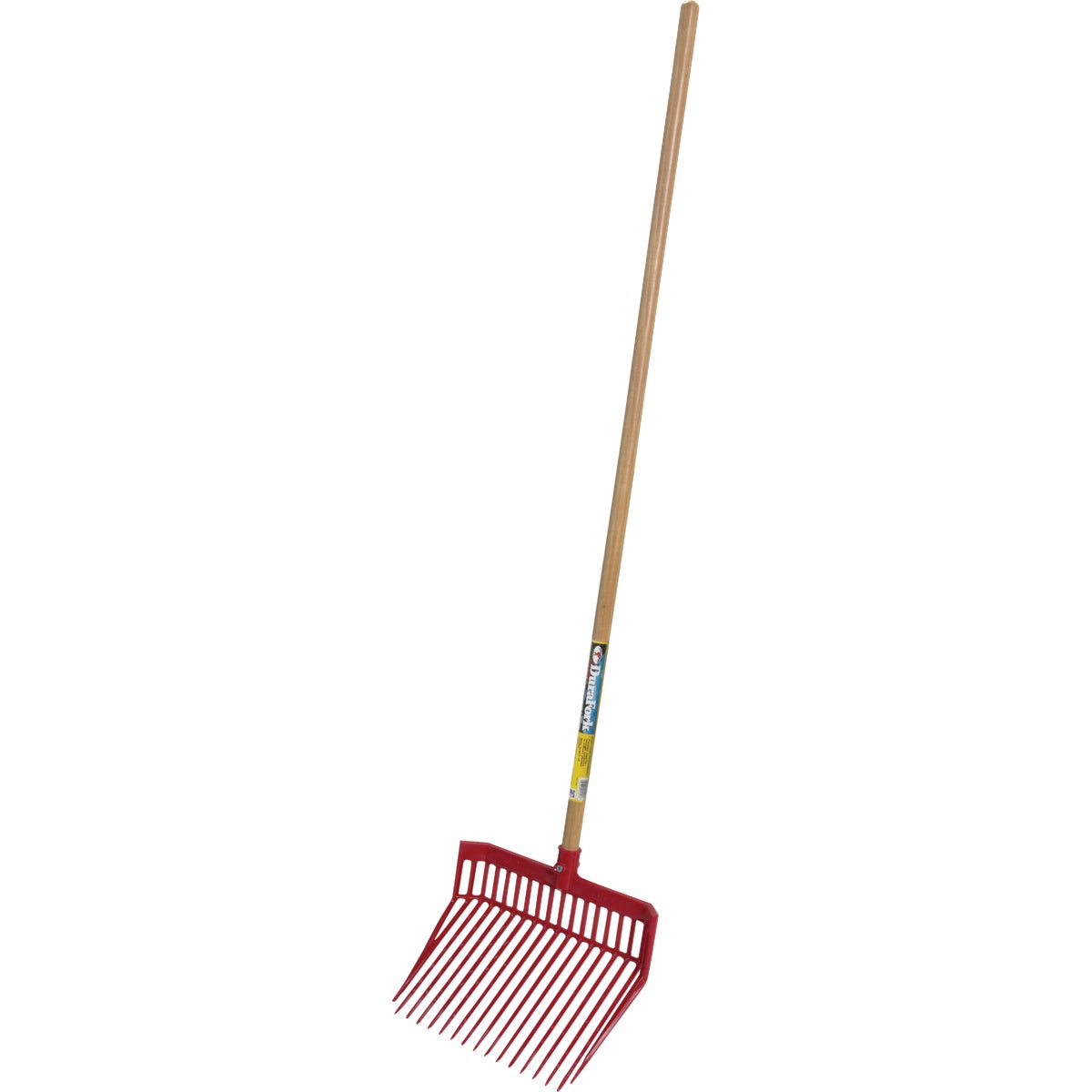 Durable stable fork featuring a heavy-duty polycarbonate construction. Designed for long-lasting use around the farm, ranch, and home. Lightweight. Specially designed tines are uniquely angled to provide easy manure pick up with less spilling. Heavy-duty screw and self-locking nut with nylon washer secures handle. Ideal for bedding and manure removal.