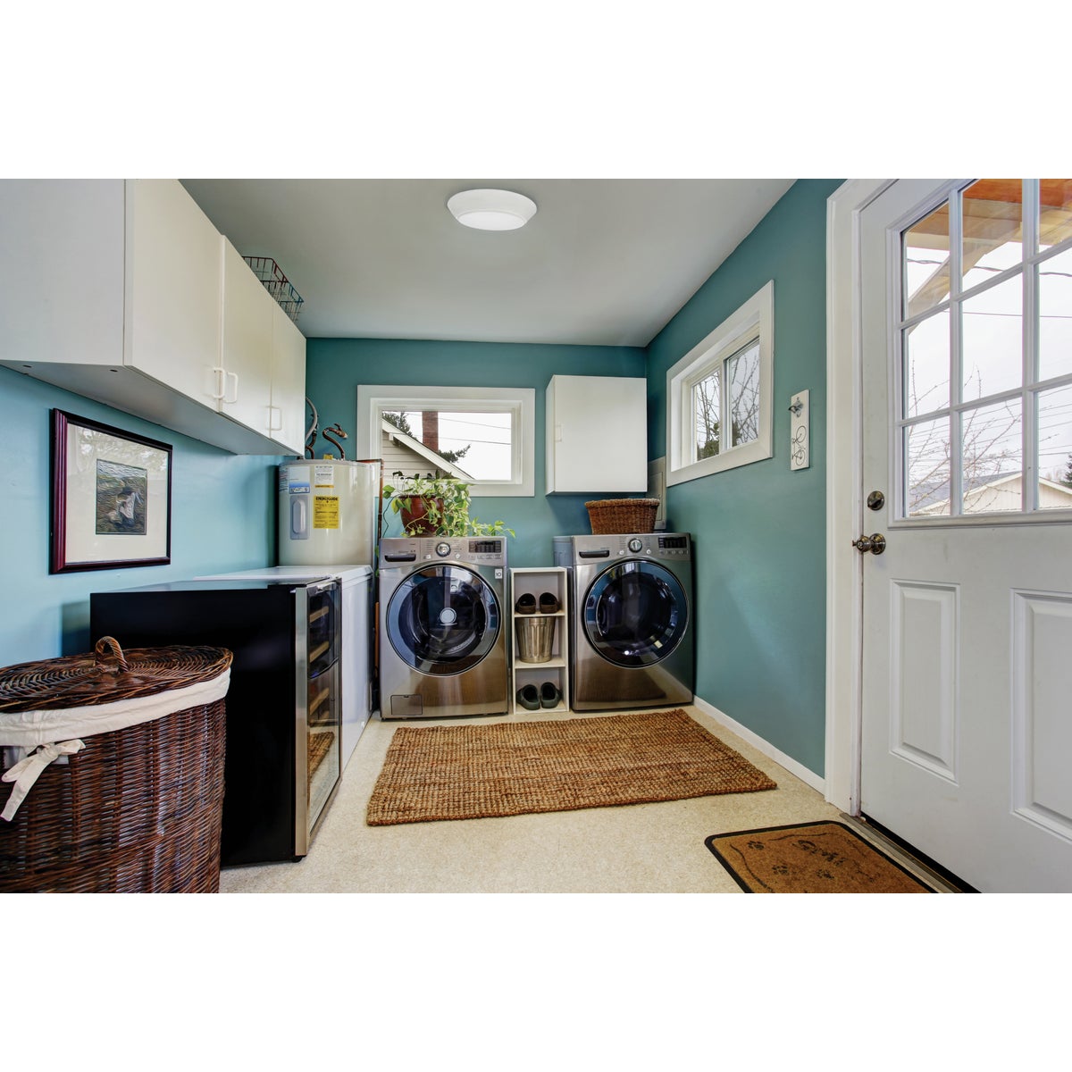 Mini flush-mount Versi Lite LED (light emitting diode) 120 volt fixture. Integrated LED system with no bulbs required so there are no bulbs to replace. Features a sleek, compact, low profile design that fits almost anywhere light is needed. Ceiling or wall mount. Saves energy and money compared to incandescent lights. No bulbs to replace. Ideal for closets, foyers, hallways, corridors, bedrooms, offices, utility work areas, stairways, and more. 50,000 hours rated life, 680 lumens.