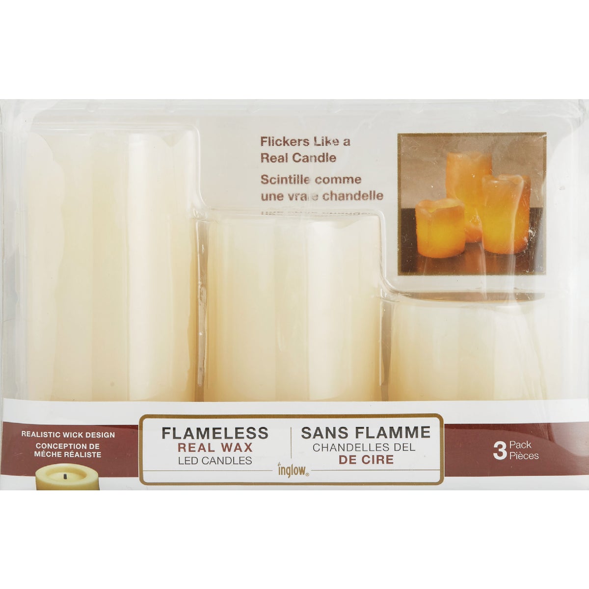 Inglow 2 In. Dia. Cream Wax Mini Pillar Flameless Candle Set (3-Pack)