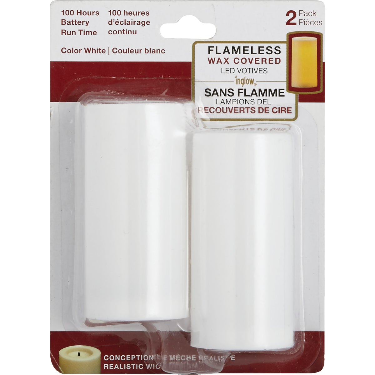 Inglow 3 In. H. x 1.75 In. Dia. White Wax-Covered Votive Flameless Candle (2-Pack)